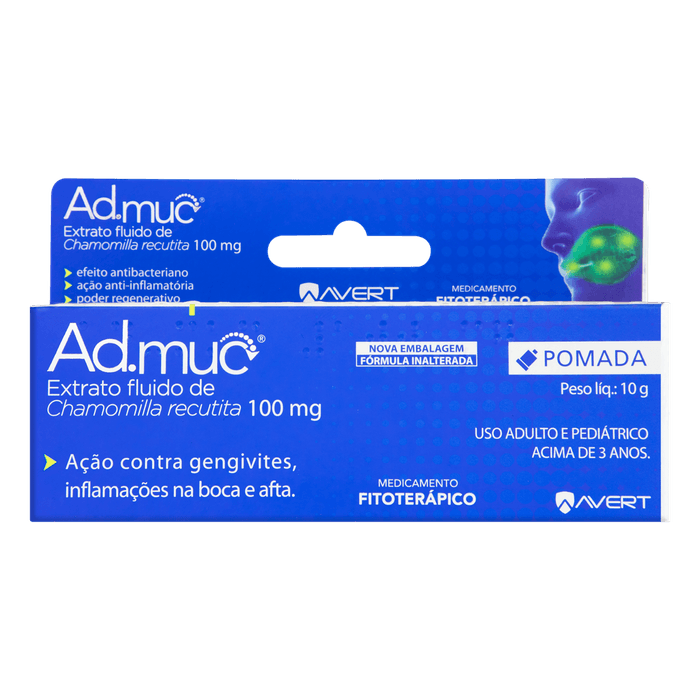 Ad-Muc é indicado para inflamações na gengiva (gengivite), mucosa oral (estomatite) e outras irritações na cavidade bucal, incluindo as que surgem de dentaduras mal ajustadas.