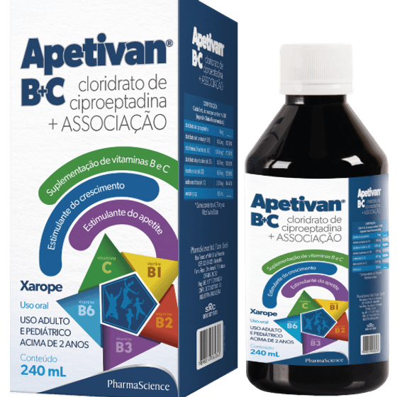 Apetivan BC PharmaScience é um suplemento vitamínico e estimulante do apetite. É indicado para complementar dietas restritivas e inadequadas, e também para idosos e crianças em fase de crescimento.