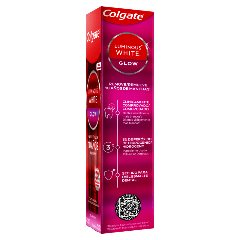 O Creme Dental Colgate Luminous White Glow 70g é um produto desenvolvido para proporcionar um sorriso visivelmente mais branco e radiante. Sua fórmula avançada atua na remoção de manchas superficiais, revelando o brilho natural dos seus dentes e promovendo uma sensação de limpeza e frescor. É ideal para quem busca dentes com um "glow" especial no dia a dia.