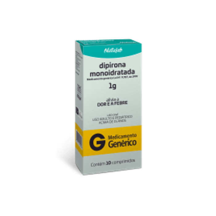 Composição: Cada comprimido de 1g contém dipirona monoidratada, crospovidona, amido pré-gelatinizado, macrogol 4000, estearato de magnésio, dióxido de silício e povidona.