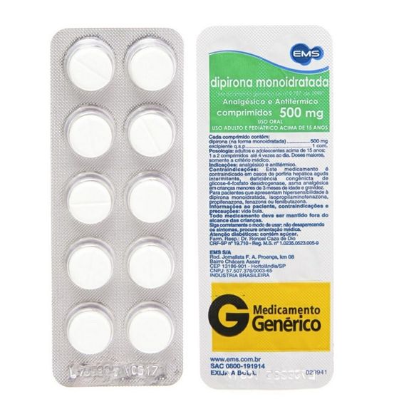 Dipirona 500mg Blíster com 10 Comprimidos - EMS