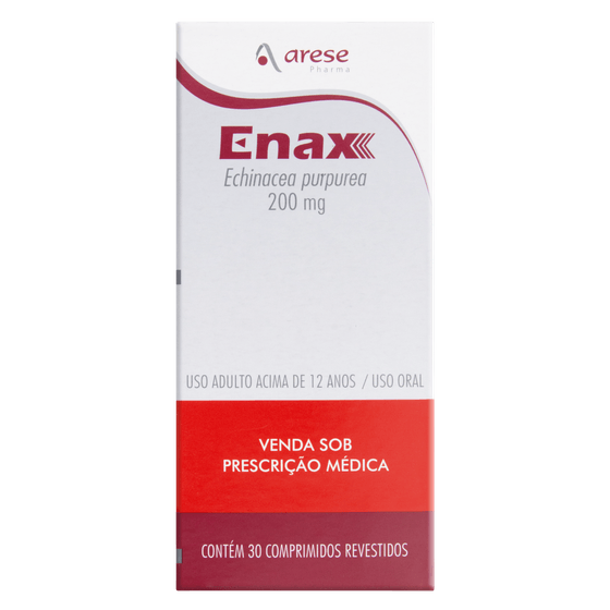 A finalidade do Enax é atuar como imunomodulador, aumentando as defesas do organismo contra infecções. Deve ser ingerido inteiro e sem mastigar, com água. A posologia é de 1 comprimido revestido, 2 a 3 vezes ao dia, ou conforme critério médico. O limite máximo diário é de 3 comprimidos, e o uso contínuo não deve exceder oito semanas consecutivas.
