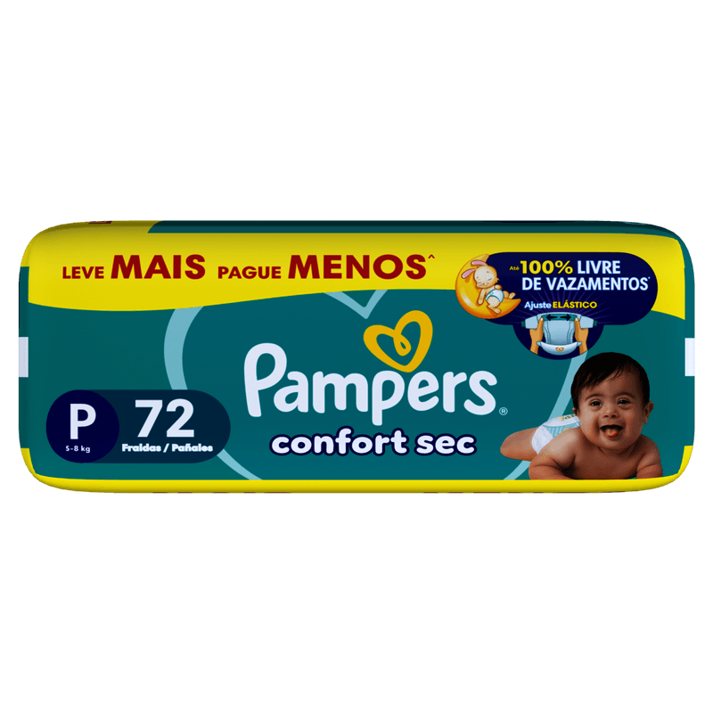Fralda Descartável Pampers Confort Sec P Leve Mais Pague Menos 72 Unidades - Pampers
