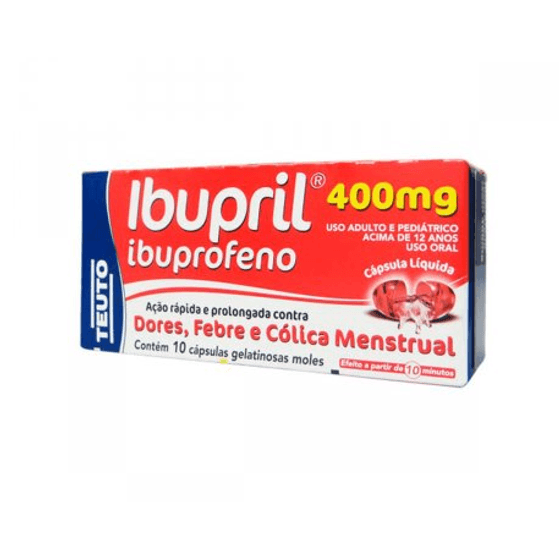 O Ibupril 400mg em cápsulas moles, da marca Teuto, é um medicamento à base de ibuprofeno, indicado para o alívio eficaz de dores, febre e processos inflamatórios. Sua fórmula atua rapidamente para combater a inflamação, dor e febre, sendo útil no tratamento de condições como osteoartrite, artrite reumatoide, reumatismo articular, traumas musculoesqueléticos e dores pós-cirúrgicas.
