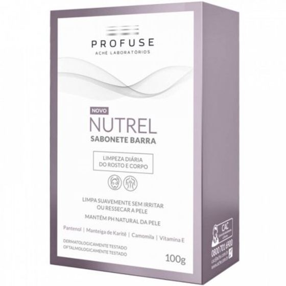 Aplique o Nutrel Profuse Sabonete em Barra sobre a pele úmida, massageando suavemente até formar espuma. Enxágue abundantemente com água. Pode ser utilizado no corpo e rosto, conforme a necessidade. Para melhores resultados, utilize diariamente ou conforme orientação de um profissional de saúde.