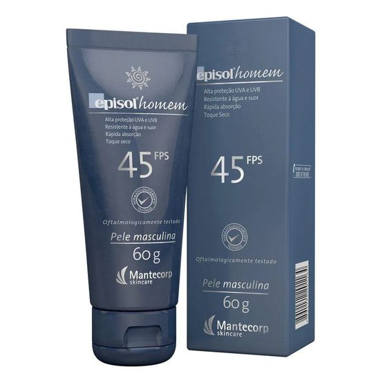 O Protetor Solar FPS45 Episol Homem 60G é um protetor solar masculino Episol Homem FPS45 desenvolvido especificamente para a pele masculina. Sua fórmula oferece alta proteção contra os raios UVA/UVB, prevenindo o envelhecimento precoce e o surgimento de manchas. É ideal como protetor para rosto e barba, com uma textura leve que não deixa a pele oleosa.