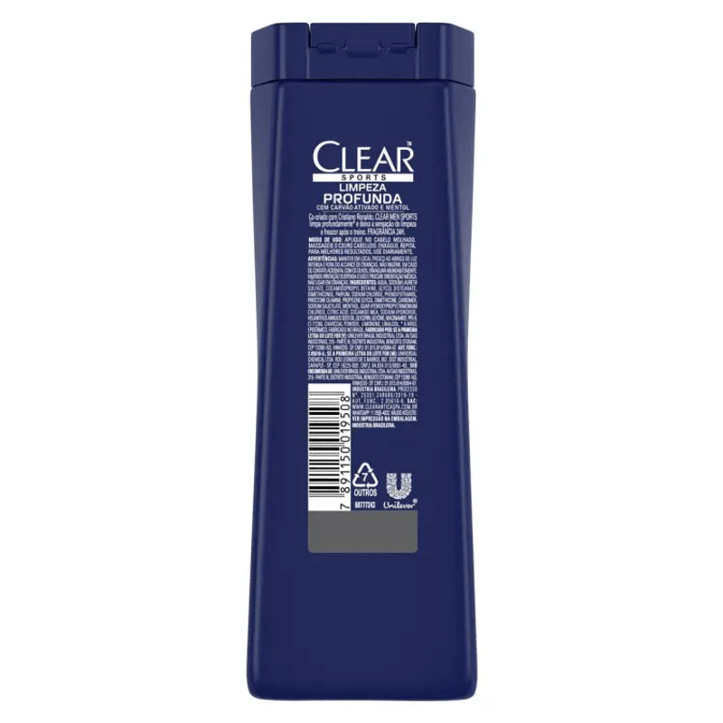 Shampoo Anticaspa Clear Men Sports Limpeza Profunda 200mL - Clear